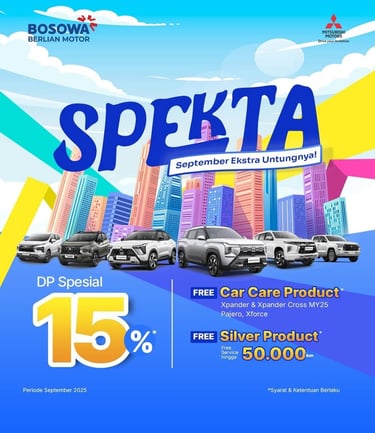 Dealer Mitsubishi Makassar - BOSOWA BERLIAN MOTOR MAKASSAR Siap melayani penjualan mobil secara Cash dan Credit untuk All-Type Mobil Mitsubishi. Pengajuan secara kredit dapat melalui Mitra Finance kami tentunya dengan Down Payment Rendah dan Angsuran Terjangkau. Harga yang tertera belum masuk promo diskon atau cashback yang tersedia, dan harga tersebut dapat berubah kapan saja.